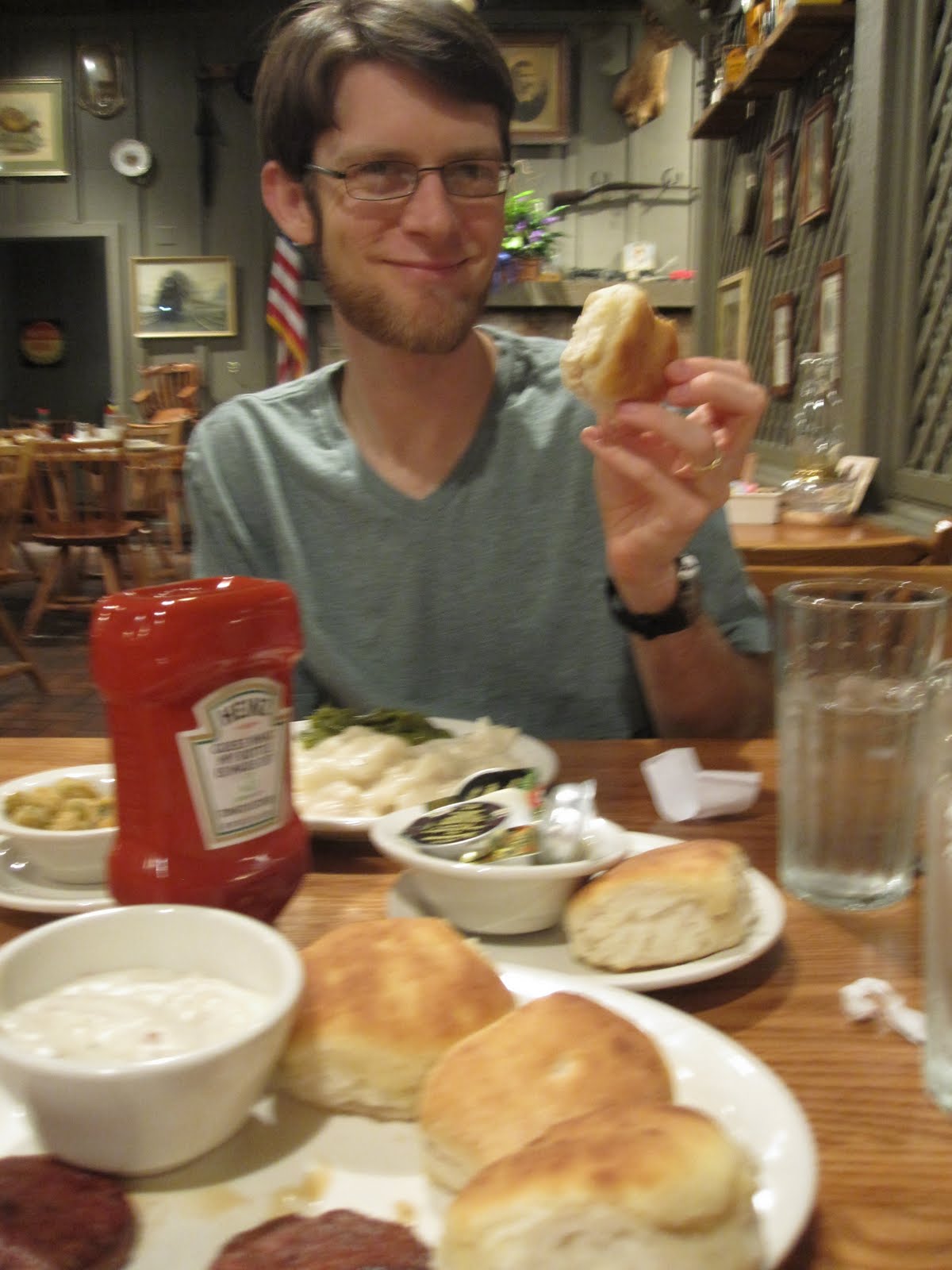 Anniversary dinner at Cracker Barrel-Sam was really craving biscuits. So biscuits we had:) |